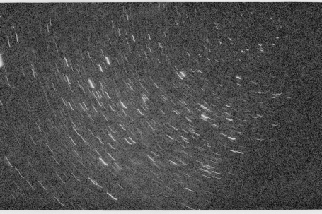 Star trails are common in photographs taken from Earth thanks to its rotation under the view the camera is observing. The most spectacular images are those where the camera has centred on a pole star, around which all the stars apparently rotate from our viewpoint. The further away from the pole star, which appears as a fixed point, the more pronounced the elongation of the trail. In the northern sky this is Polaris, in the south it is Sigma Octantis.