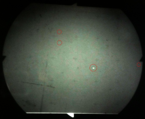 And here are the same two images contrast adjusted and with bright objects highlighted.
