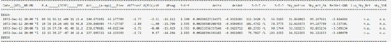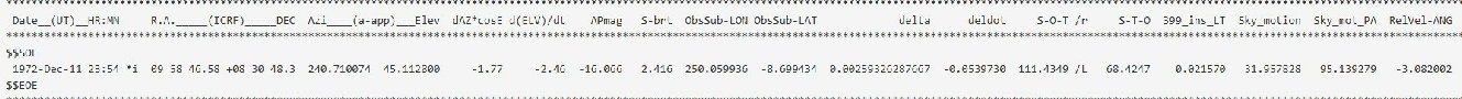 The really important parts here are the Azi__(a_app)__Elev values of 240.710074 and 45.112800.
