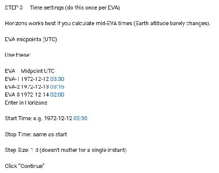 So you cant follow step 2 as he’s given it. Let’s put EVA start and end times in for EVA 1 instead.