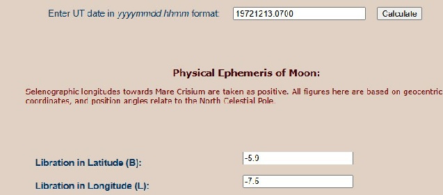 Add to that the natural wobble of the moon in relation to Earth (libration) and there’s a little more variation. He knows that exists, but all he manages to do is subtract libration values from his false 70 degrees figure to produce answers that are still incorrect.