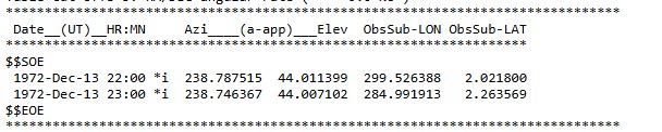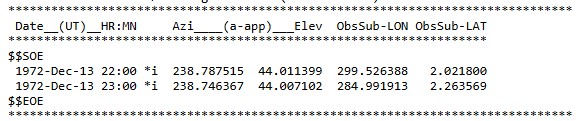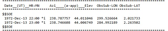 2) Prove MEAN_ME 45°/238° are the correct values for Apollo (1972).