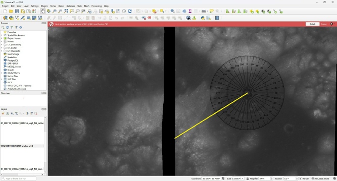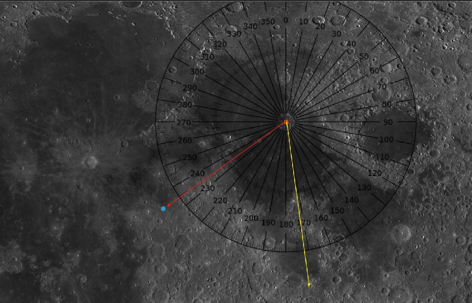 Here’s another one that spends a lot of time at he South Massif in relation to Apollo data, and again is quite happy as to its location. This is a photo taken by an amateur telescope. What coordinate system is it using? What’s the azimuth from LM to the centre of the South Massif?