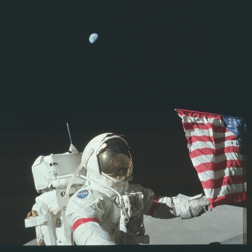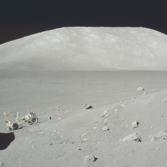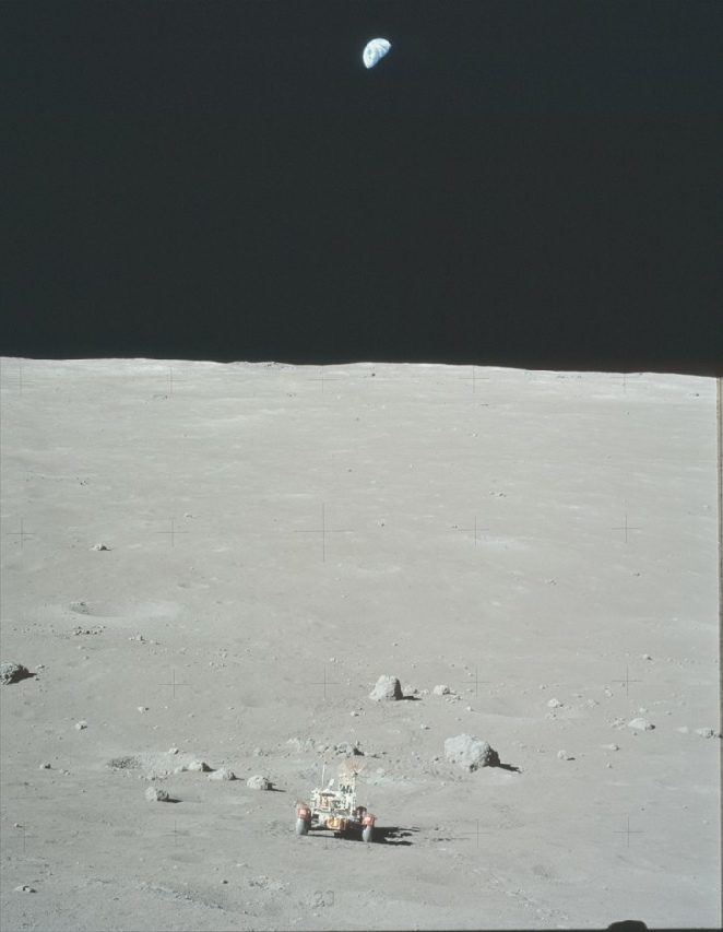 “[Earth] was very close to the horizon on Apollo 17 and that was unique for us we didn't have to look up like most of the other flights from most of the other Landing sites were to look at the Earth I mean I just glance over my shoulder and there's the Earth.”