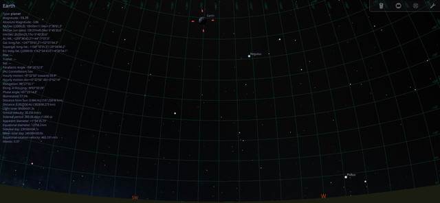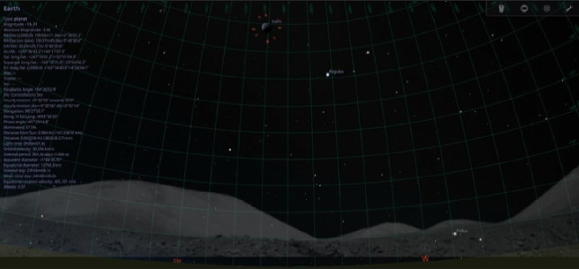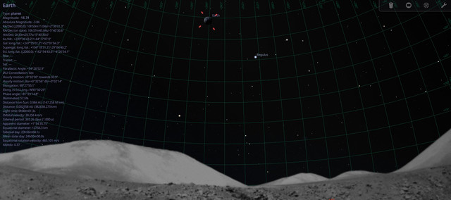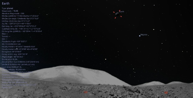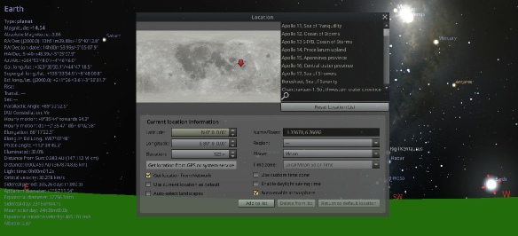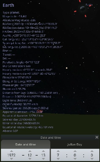 Earth is now more correctly positioned, but the values displayed on the left are unchanged. Stray’s claim that Stellarium is somehow mistakenly reading the top of the south massif isn’t helped by the original positioning of Earth being nowhere near it!