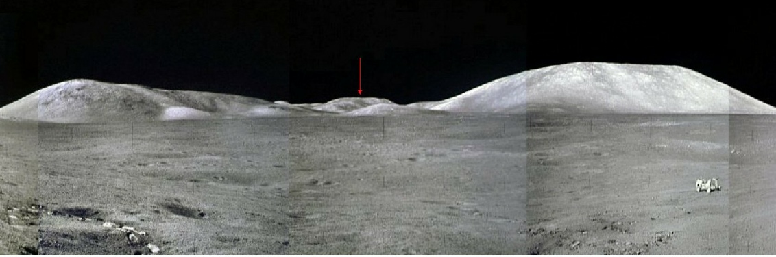 At Taurus–Littrow, the South Massif rises ~2 km above the landing site, and from that distance it subtends ~8–12° of vertical angle.