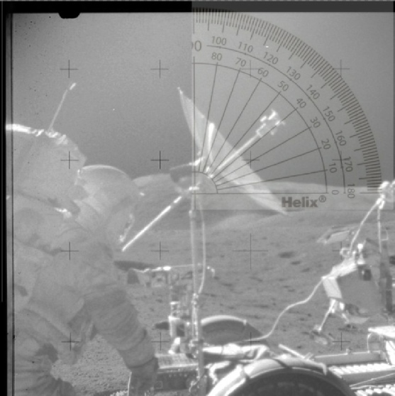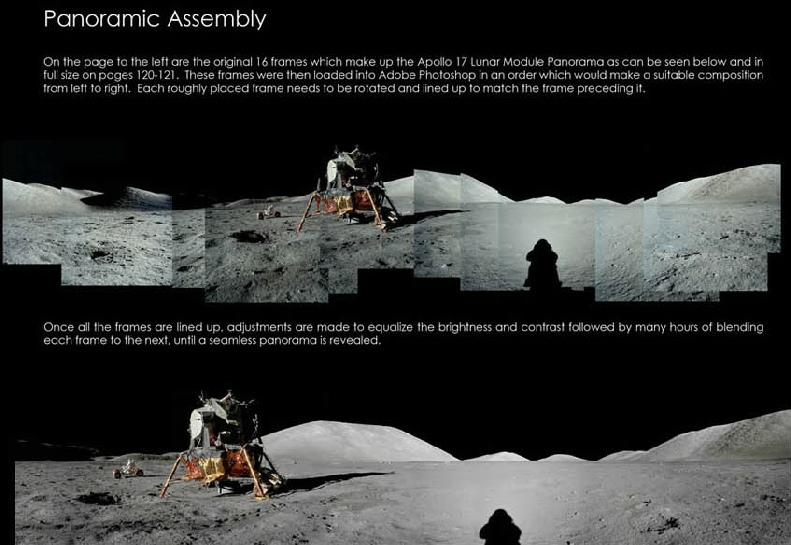 Fancy software wasn’t around when the Apollo missions were, so these panoramas were hand assembled. Here it is on the ALSJ site: