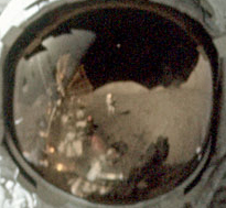 Even allowing for distortion of the visor it’s obvious Earth is hanging above the South Massif. Straydog doesn’t like it: