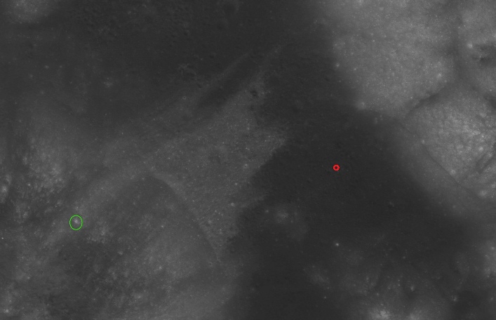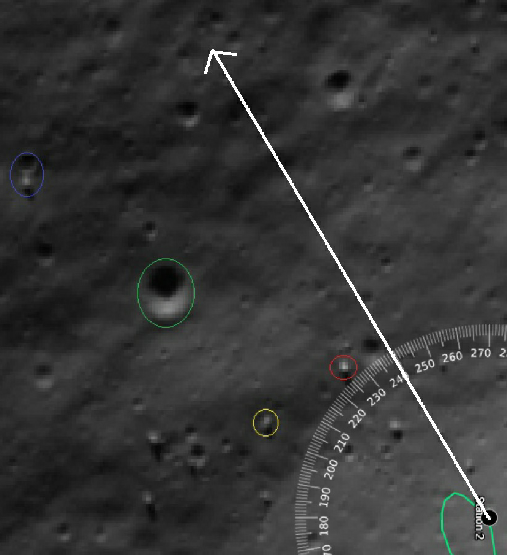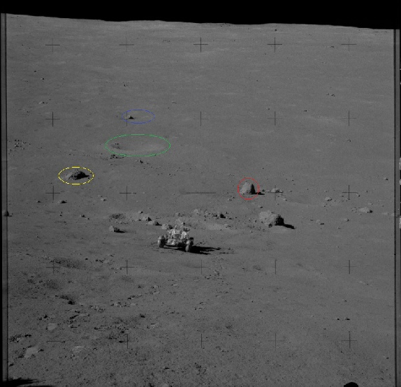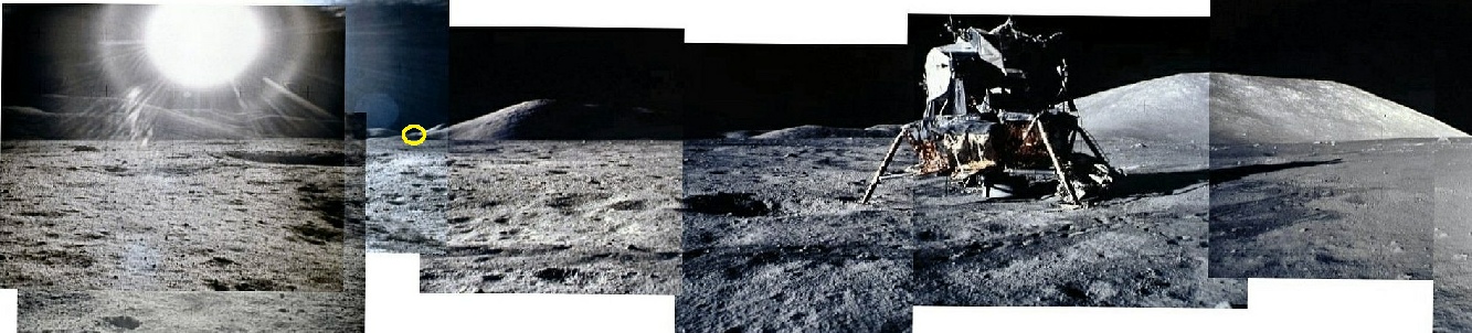 It’s recorded as having been taken at around 00:30 on the December 12, which puts the sun azimuth at somewhere around 96.5 degrees from the LM. I’ve circled a point in yellow. That same point can be seen here: