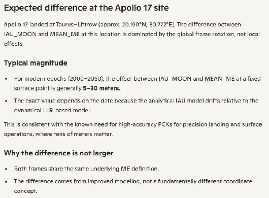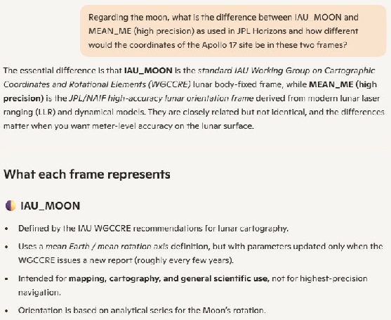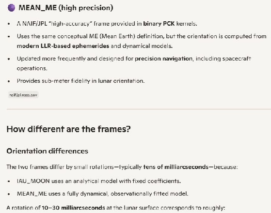 Which is odd, because if I ask the question “How is the IAU_MOON reference frame derived, I get this AI composed answer: