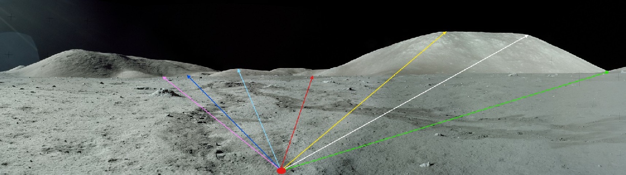 Therefore, while the 238° figure may be correct in its own coordinate system, it is not the proper frame for interpreting surface observations or matching Apollo 17’s photographic evidence. The physical geography and mission photos support the ~170° azimuth, not 238°.