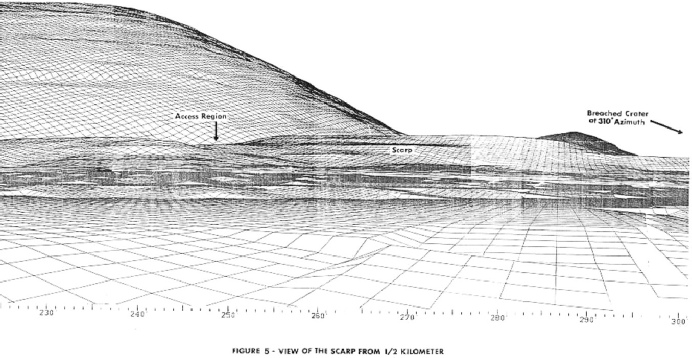 The ‘Scarp’ in the left image is roughly where station 2 is. What are the azimuth readings there stray? Are they 175 degrees? A simple yes or no will suffice. The memo’s author is pretty clear: