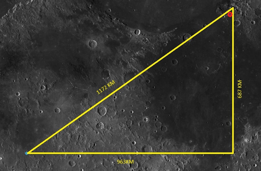 Where ‘phi’ is the latitude of the LM and delta lambda is the difference in longitude between the meridian and the lunar module.