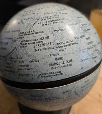 Mission planners also knew what the Earth would look like. The mission flight plans has the predicted view of Earth for various points (albeit from the CSM, not the surface). Here are the two either side of the landing. 83 GET is a couple of hours before lunar orbit insertion, 239 is just after the TEI burn home. I’ve allowed for the time added to the actual mission clock compared with the predicted one after delays in the launch.