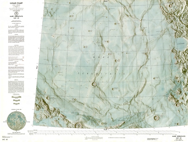 The two Lunar Astronautical Charts (LAC) covering the Apollo 17 site are shown below, and this page describes the work involved in producing them.