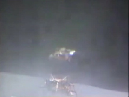 Visuals: What we see is a tiny, jerky blob supposedly representing the LM rising from the surface—no plume, no dust, no dynamic interaction with the environment.