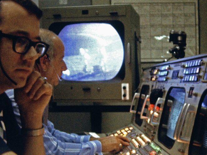 Thee are three elements to the filming: the live TV footage available from Apollo 15, 16 and 17 taken by the lunar rover, footage taken from the command modules of the lunar module’s return (16mm footage and also, in some cases, live TV), and the footage taken from within the the lunar module itself (16mm).