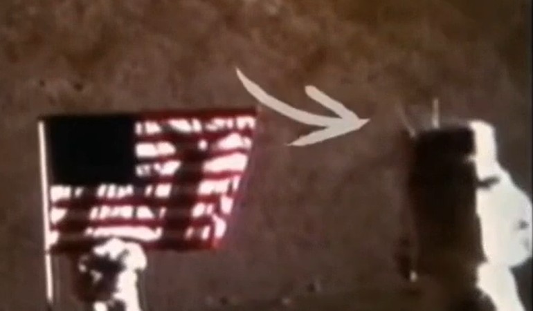 Not once do we see them get tangled. Only once do we see this one tiny flicker of light off the top of the PLSS. Rasa strawmans the opposition to his claim saying that we claim it;s a glitch caused by cosmic rays, and that glitches can only be vertical.