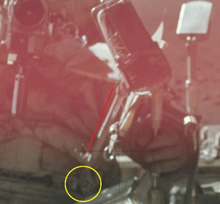 The next smoking gun discussed here, is one that (full disclosure) I’ve had to revise my vie won a number of times thanks to things that people, including Rasa, have pointed out in discussions on his facebook page. It concerns a sequence of three photos that Rasa has declared to be impossible, given the way the cameras worked and what it shows. Here they are, AS17-