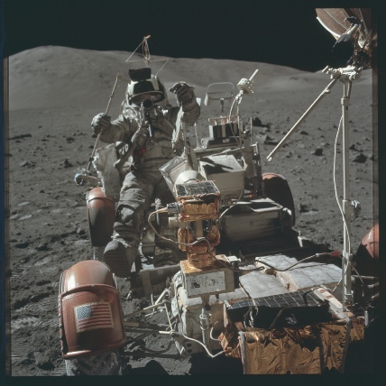 What we don’t see in the third photo is any evidence of the LRV sampler again. There’s no sign of it, and by the time they get back to the LM it’s gone completely. If it had fallen on the floor next to Jack, it’s likely Cernan would have spotted it, so it’s more likely that Jack has tried to deposit it in the equipment rack behind him, from whence it has fallen en route back to the LM.